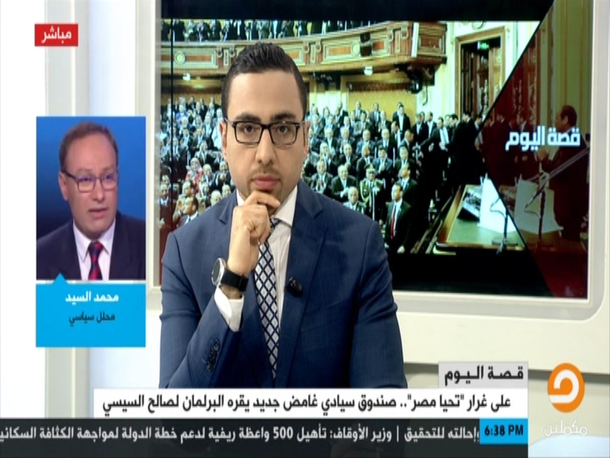 قال محمد السيد المحلل السياسي، إن مصر تمر بمرحلة حكم الفرد الواحد الذي يستطيع أن يقرر بمفرده, أو بالأجهزة التابعة له، وهو مسيطر على كل المؤسسات التشريعية والقضائية ...