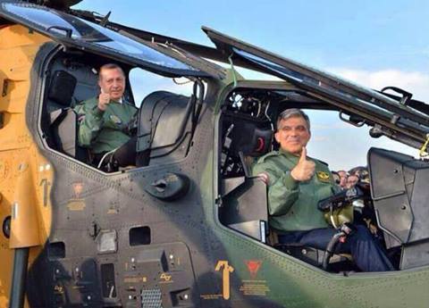الحرية والعدالة تداول نشطاء على موقع التواصل الاجتماعى "فيس بوك" صور للرئيس التركى عبدالله جول ورئيس الوزراء رجب طيب أردوغان على متن أول هيليكوبتر قتالية " تركية " ...