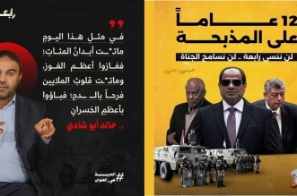 12 سنة مرت على أكبر وقائع القتل الجماعي لمتظاهرين سلميين في يوم واحد في التاريخ الحديث، وعلى قتل العسكر في مصر لزينة الرجال والشباب والنساء وبداية أسوأ حقبة ...