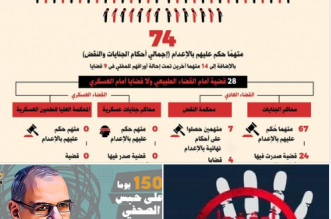 رصد تقرير حملة "أوقفوا عقوبة الإعدامات في مصر" التي أطلقتها المفوضية المصرية للحقوق والحريات 534 حكما بالإعدام صدرت خلال الفترة من أغسطس 2020 إلى أغسطس 2021. وأوضحت أن "الأحكام الصادرة خلال ...