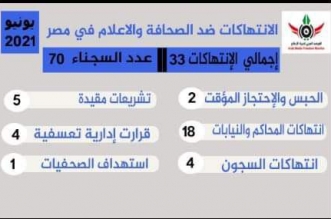 أكد "المرصد العربي لحرية الإعلام" أن "شهر يونيو 2021 المنقضي كان حافلا بالانتهاكات ضد حرية الإعلام من قِبَل السلطات، والتي تنوعت بين انتهاكات تشريعية بهدف فرض المزيد من التضييق على ...