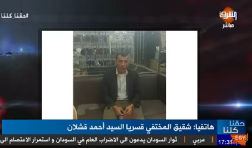 روى شقيق السيد أحمد قشلان تفاصيل اعتقال داخلية الانقلاب له من منزله بمدينة البرلس بكفر الشيخ، والاستيلاء على 350 ألف جنيه من المنزل يوم 6 مارس 2019. وأضاف ...