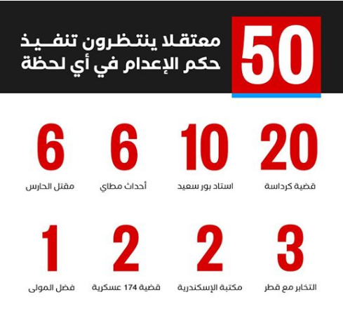 تداول عدد من نشطاء التواصل الاجتماعي والمراكز الحقوقية، قائمة تضم أسماء الـ50 شخصًا المحكوم عليهم بالإعدام بأحكام نهائية في قضايا ثبت عوارها القانوني وانعدام الأدلة، وبات تنفيذ الحكم ...