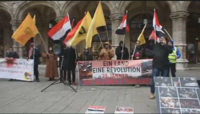 نظَّم عدد من أعضاء الجالية المصرية بالعاصمة النمساوية فيينا، وقفة احتجاجية أمام مبنى الأوبرا ضد عبد الفتاح السيسي، قائد الانقلاب العسكري، ضمن سلسلة فعاليات لإحياء ذكرى ثورة 25 ...