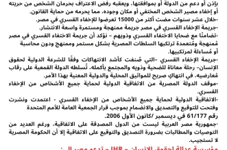 التعليقات على “أحياء في الذاكرة ” يرصد 18897 حالة إخفاء منذ عام 2013 بينها 1630 خلال 2023 مغلقة