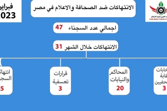التعليقات على 31 جريمة ضد الصحفيين في فبراير على رأسها انتهاكات سجن “بدر” مغلقة