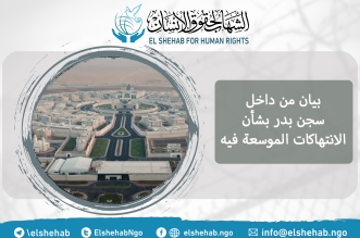 كشف بيان صادر عن المحتجزين داخل سجن بدر 3 عن انتهاكات خطيرة ومتصاعدة ترتكبها إدارة السجن بحق معتقلي الرأي، بما يخالف أدنى معايير حقوق الإنسان ويمثل جريمة ...