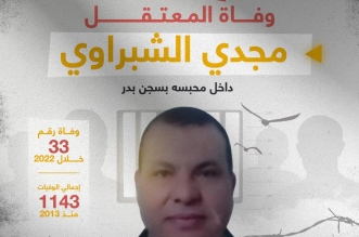 استشهد المعتقل مجدي الشبراوي ، صاحب مكتبة زهرة المدائن بالمنصورة، داخل سجن بدر سيئ السمعة، بسبب الإهمال الطبي المتعمد الذى تعرض له وسوء ظروف الاحتجاز بحسب ما وثقته ...