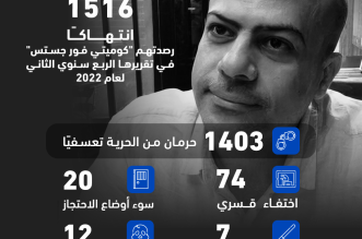 رصد فريق منظمة “كوميتي فور جستس” 1516 انتهاكا في الربع الثاني من هذا العام ، وقعت في غضون ثلاثة أشهر بين أبريل ويونيو 2022 ضمن مشروع مراقبة مراكز ...