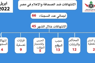 أكد "المرصد العربى لحرية الإعلام" استمرار نهج سلطات الانقلاب في قمع واستهداف حرية الصحافة خلال إبريل المنتهي. ورغم الإفراج عن ٧ صحفيين إلا أن الشهر ذاته شهد مطاردة وحبس عدد من الصحفيين ...