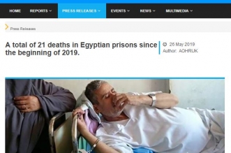 بعدما وصل عدد الوفيات بسجون الانقلاب، منذ بداية 2019، إلى نحو 21 حالة وفاة، ونحو 763 حالة وفاة في مراكز الاحتجاز منذ 3/7/2013، بينها 552 نتيجة للإهمال الطبي، ...