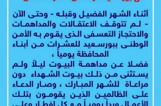 استنكرت رابطة أسر الشهداء والمعتقلين في بورسعيد تزايد جرائم ميلشيات العسكر فى مداهمة المنازل واعتقال العشرات يوميا من أبناء المحافظة خلال شهر رمضان، مطالبة بوقف تلك الجرائم واحترام ...