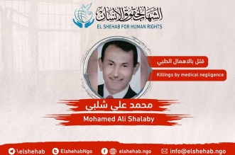 استشهد المعتقل “محمد علي عيد شلبي” داخل محبسه بسجن وادى النطرون نتيجة للإهمال الطبي المتعمد، ومنع علاجه المقرر له وإعطائه علاجا بديلا تسبب في تدهور حالته الصحية بشكل ...