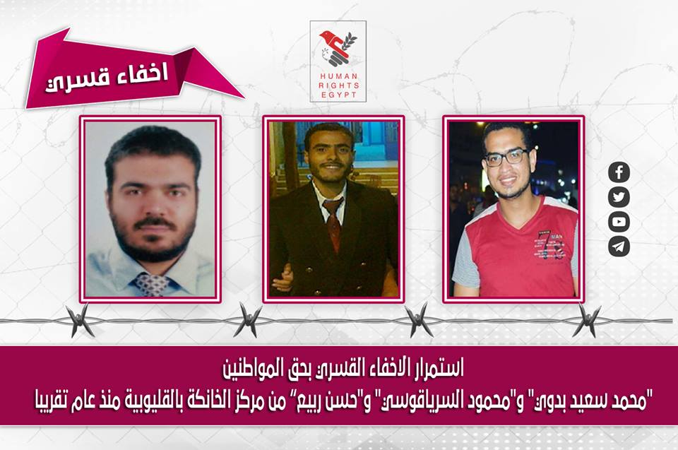 تواصل ميليشيات الانقلاب العسكرى بالقليوبية، إخفاء 4 من أبناء المحافظة لمدد متفاوتة منذ اختطافهم من قبل قوات أمن الانقلاب، دون سند من القانون بشكل تعسفى، ضمن جرائمها بحق ...