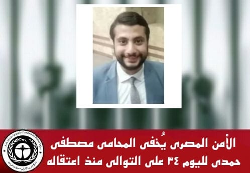 تواصل مليشيات أمن الانقلاب بالفيوم إخفاء المحامي مصطفى كمال حمدي، 24 عاما، لليوم الـ34 على التوالي منذ اعتقاله يوم الخميس 30 أغسطس الماضي، أثناء سيره في أحد أحياء ...
