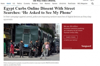 قالت صحيفة “وول ستريت جورنال”، إن مصر تمنع المعارضة على الإنترنت مع عمليات البحث في الشوارع عن هواتف المصريين، مضيفة أنها في حملتها ضد الاضطرابات، تفرض الشرطة عمليات ...