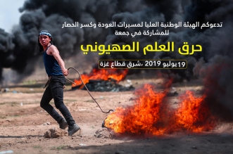 تواصل مسيرات العودة فعالياتها الشعبية في الجمعة السابعة والستين، تحت عنوان "جمعة حرق العلم"؛ ردًّا على رفع علم الكيان الصهيوني في بعض العواصم العربية مؤخرًا؛ ووسط تأكيدات أن ...