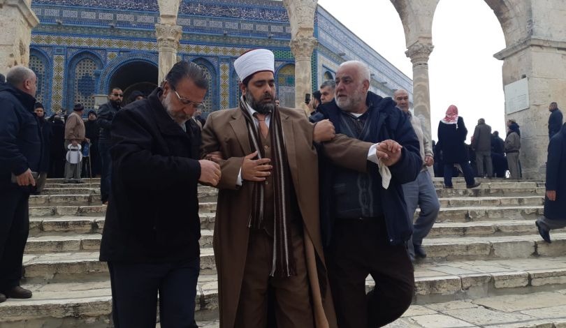شاهد| الصهاينة يحاصرون “قبة الصخرة” ويعتدون على إمام المسجد الأقصى