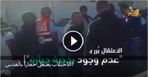 كتب حسن الإسكندراني: فى واقعة هزلية تناقل ناشطون عبر "يوتيوب" مقطع فيديو لقيام قوات الاحتلال الصهيونى باعتقال "حمار" فى مدينة القدس الشريف بزعم عدم وجود رخصة. النشطاء ورواد ...