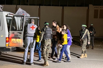 بثت كتائب القسام -الجناح العسكري لحركة المقاومة الإسلامية “حماس” – مشاهد جديدة لمراسم تسليم المحتجزين الإسرائيليين في ساحة فلسطين وسط مدينة غزة في ثالث عملية تبادل مع جيش  ...