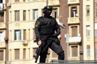 مع صورة لضابط شرطة ملثم يقف أعلى آلية شرطية، ليواجه مظاهرات أطلقها محتجون على صفقة مثيرة للجدل لتسليم جزيرتي تيران وصنافير في البحر الأحمر إلى المملكة العربية السعودية، ...