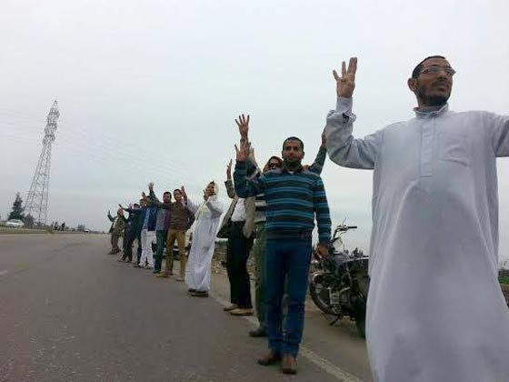كفر الشيخ .. مسيرة بـ”الحصفة” وسلسلة بشرية بـ”الروس” تنديدا بالانقلاب