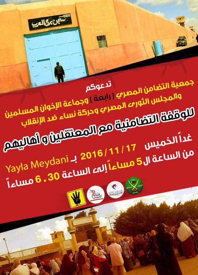 كتب أحمد علي: تضامنا مع المعتقلين بسجن برج العرب والانتهاكات التى يتعرضون لها تنظم جمعية التضامن المصرى "رابعة" بالاشتراك مع المجلس الثورى والإخوان المسلمين وقفة اليوم الخميس الساعة ...
