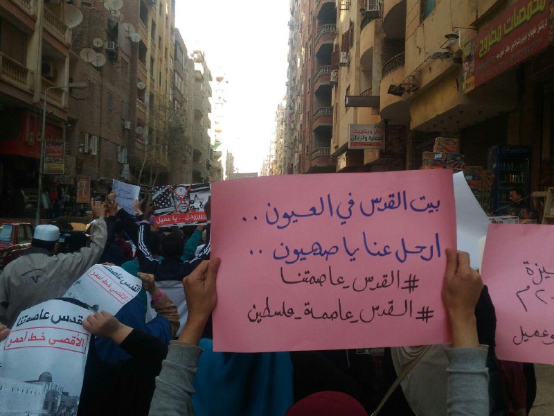 خرجت مسيرة غاضبة في حي المهندسين بالجيزة تضامنا مع القدس والأقصى، ورفضا لادعاءات الرئيس الأمريكي بأن القدس المحتلة عاصمة للكيان الصهيونى ومشاركة في مظاهرات «انتفضوا لأجل القدس»، التى ...
