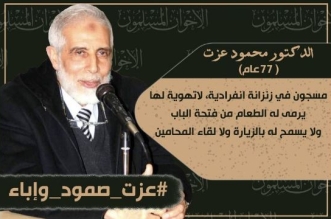 تفاعل ناشطون ومغردون عبر مواقع التواصل الاجتماعي "فيسبوك" و"تويتر" مع وسم #عزت_صمود_وإباء في إشارة إلى التضامن الواسع مع الدكتور محمود عزت نائب المرشد العام لجماعة الإخوان المسلمين وأستاذ ...