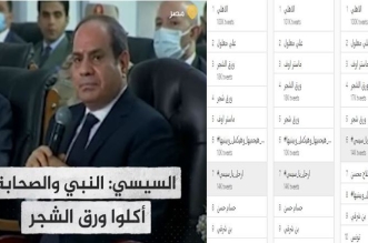 تصدر هاشتاج #ارحل_يا_سيسي مواقع التواصل الاجتماعي، بعد تبريره الجوع الذي يعيشه الشعب المصري بحديث عن حصار الصحابة وأكلهم لـورق الشجر، مطالبا المصريين بالصبر وتحمل الأزمة الاقتصادية ، محذرا ...