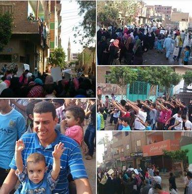 هتف المشاركون ضد حكم العسكر و قائد الانقلاب الدموي ونادوا بإسقاطه ونددوا بحكم القضاء الجائر ورفعوا صور الدكتور محمد مرسي الرئيس الشرعي لمصر وشارة ر ابعة الصمود وسط ترحيب من الاهالي.