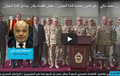 قال المستشار أحمد مكي، وزير العدل الأسبق إن موافقة برلمان الانقلاب على قانون تحصين كبار قادة القوات المسلحة والذي يمنع ملاحقة قادة المجلس العسكري قضائيا بشأن جرائم الانقلاب يعد اعترافا بمسؤولية قادة القوات المسلحة عن المذابح التي وقعت منذ الانقلاب العسكري.