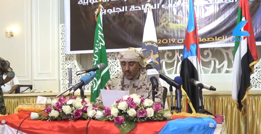 وفي كلمته التي ألقاها مساء السبت أمام الاجتماع الموسع الثاني لقيادات ما يعرف بالمقاومة الجنوبية بكافة تشكيلاتها الأمنية والعسكرية في عموم محافظات الجنوب لم يذكر عيدروس الزبيدي رئيس المجلس الانتقالي الجنوبي المدعوم إماراتيا الحكومة الشرعية في اليمن الذي يقول تحالف الرياض أبوظبي إنه جاء لتثبيت شرعيتها، وأعلن التعبئة للسيطرة على وادي حضر موت الذي تسيطر عليه قوات المنطقة العسكرية الأولى التابعة للحكومة الشرعية.