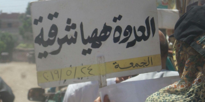 رفع ثوار الشرقية، اليوم الجمعة، شعار “معًا ضد الصفقة”، منددين بما يدور بمؤتمر المنامة واجتماع الرؤساء العرب لتمرير صفقة القرن دعمًا للصهاينة، متجاهلين الحق الفلسطيني السليب، وذلك أثناء مسيرتهم عقب صلاة الجمعة، والتي جابت شوارع “العدوة”، مسقط رأس الرئيس الشرعي للبلاد.