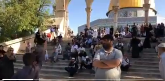 ويظهر في الفيديو الطفل وهو يبكي ويقود تكبيرات المرابطين بالمسجد الأقصى المبارك، والذين تصدوا لاقتحامات مئات المستوطنين واعتداءات جنود الاحتلال.
