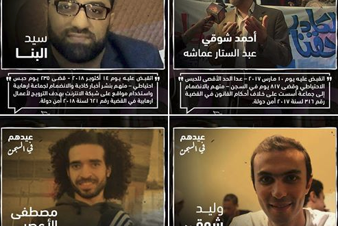 يضاف إليهم أيضا محمد القصاص والذي قضى 482 يومًا في الحبس الاحتياطي، ومصطفى الأعصر والذي قضى 486 يومًا في الحبس الاحتياطي، وشادي أبو زيد والذي قضى 395 يومًا في الحبس الاحتياطي، وحسن البنا الذى قضى 485 يومًا في الحبس الاحتياطي.