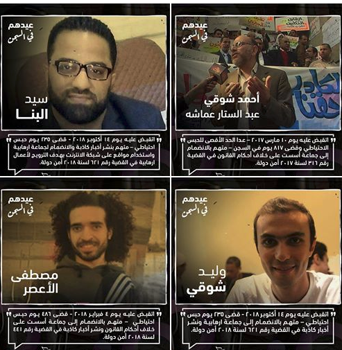 ووثّقت المفوضية المصرية للحقوق والحريات، تحت هاشتاج #عيدهم_في_السجن، قصص بعض هؤلاء، بينهم محامون وأطباء ونشطاء وآخرون من أبناء الشعب المصري الذين لا يقبلون الضيم ويرفضون أن ينزلوا على رأى الفسدة.
