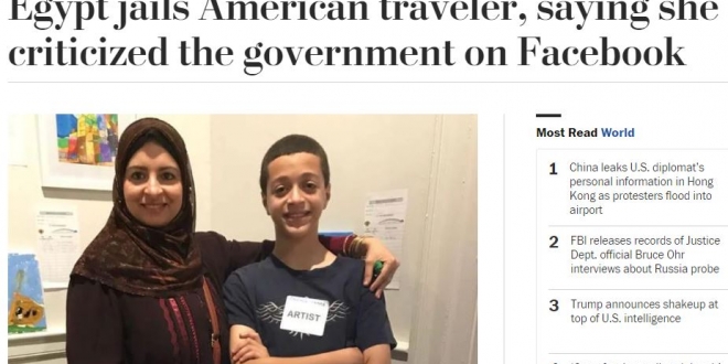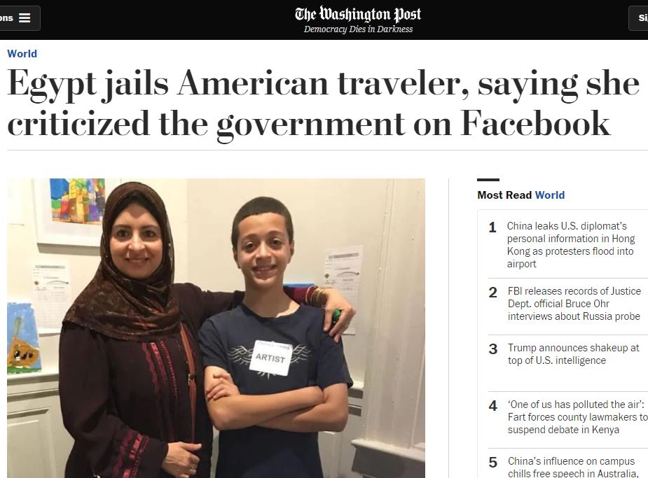 اهتمت صحيفة “واشنطن بوست” الأمريكية باعتقال المواطنة الأمريكية من أصل مصري ريم محمد الدسوقي، مدرسة مقيمة بولاية بنسلفانيا، ونقلت صرخات ولدها “مصطفى” لغياب والدته في غياهب سجون عبدالفتاح السيسي وقالت إن السلطات المصرية تعتبر أن جريمتها هي إدارة حسابات تنتقد النظام على “الفيسبوك”.