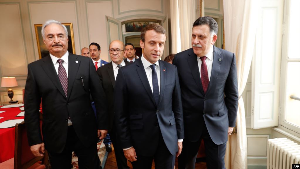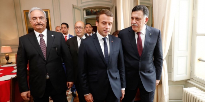 هذا ما عُرف ويناقض ما يعلن من موقف فرنسي يتمثل في البحث عن مخرج سلمي للصراع الليبي، فقد استقبل ماكرون في مايو من العام الماضي ممثلي دول كبرى وأخرى إقليمية إضافة إلى حفتر والسراج؛ على أمل التوصل لحل سياسي.