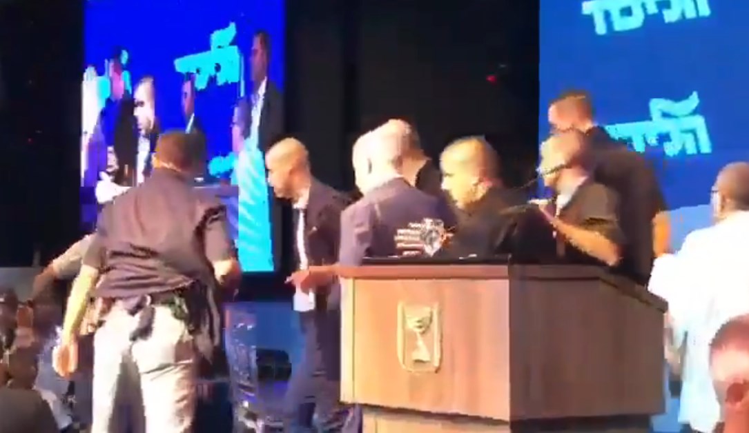 تداول نشطاء على مواقع التواصل الاجتماعي مقطع فيديو يظهر لحظة هروب رئيس وزراء الاحتلال بنيامين نتنياهو عقب استهداف المقاومة مؤتمرًا انتخابيا له في مدينة أسدود.