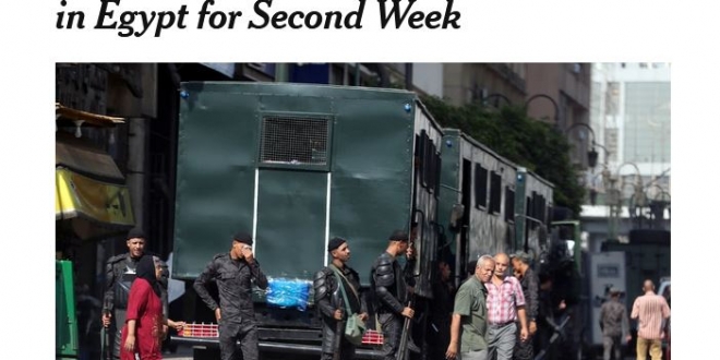 وقفت صحيفة “نيويورك تايمز” الأمريكية على وسط القاهرة اليوم الجمعة، فأشارت إلى أنه مع اندلاع احتجاجات متفرقة في مصر للأسبوع الثاني، كان وسط القاهرة يعج بقوات الأمن وخالية من المدنيين تقريبا، أغلقوا ميدان التحرير والطرق القريبة؛ ما يجعل من الصعب على المتظاهرين الوصول إلى المنطقة.