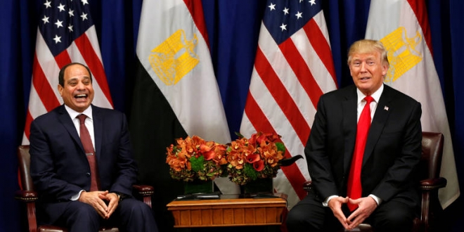 ولفت التقرير إلى أن السيسي قدم أوراق اعتماده، ليحوز الرغبة الأمريكية فى بقائه، ظهر ذلك خلال المؤتمر الصحفى الذى جمع السيسى بترامب، على هامش فعاليات الجمعية العامة للأمم المتحدة بنيويورك فى 23 سبتمبر الجارى.