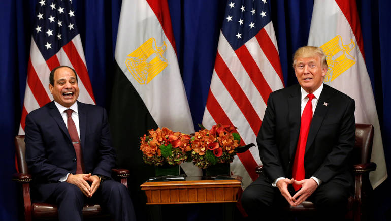 وتلقف ترامب الورقة ورد بالتوقيع بالاعتماد مباشرة، حيث صرح ترامب حول وجود تظاهرات في مصر، قائلاً: “أعتقد أن الجميع لديهم تظاهرات واحتجاجات، حتى الرئيس الأمريكي السابق باراك أوباما كان هناك تظاهرات واحتجاجات في عهده في الشارع، ولكن مصر لها قائد عظيم محترم، وقبل أن يأتي للسلطة في مصر كانت هناك فوضى”، وواصفًا السيسي ب”القائد العظيم”.