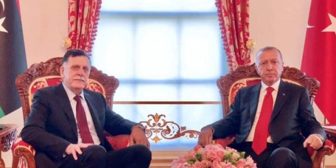 وقّعت حكومة الوفاق الوطني الليبية وتركيا، مساء الأربعاء، مذكرتي تفاهم حول التعاون الأمني والعسكري بين البلدين، والسيادة على المناطق البحرية، وذلك بحضور الرئيس التركي رجب طيب أردوغان، ورئيس المجلس الرئاسي فائز السراج، إلى جانب وزراء الداخلية والدفاع والخارجية في البلدين.