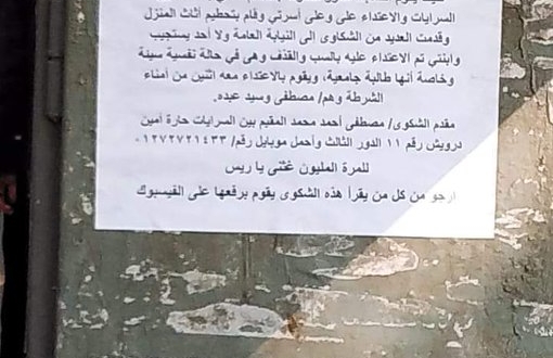 أثار ملصق مطبوع على جدران الشوارع القريبة من جامعة القاهرة، فضول المصريين وسخطهم من عصابة الانقلاب، ويحمل الملصق أو المنشور شكوى ضد قمع الشرطة كتبها مواطن، يشرح فيها كيف اعتدت الشرطة عليه وعلى أسرته وحطّمت أثاث بيته، ولم ينس المواطن أن يرفعها إلى جنرال إسرائيل السفيه عبد الفتاح السيسي؛ لعلَّ قلبه أن يرق ويرأف بحاله ويرفع عنه ظلم صبيانه في العصابة.