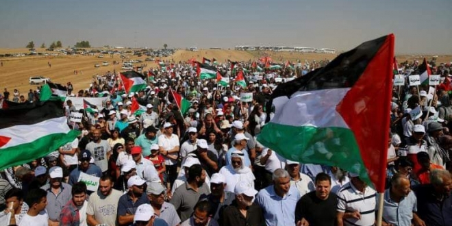 ويشارك الفلسطينيون، منذ 30 من مارس 2018، في مسيرات سلمية، قرب السياج الفاصل بين قطاع غزة والأراضي الفلسطينية المحتلة عام 1948، للمطالبة بعودة اللاجئين إلى مدنهم وقراهم التي هُجروا منها في 1948 وكسر الحصار عن غزة.
