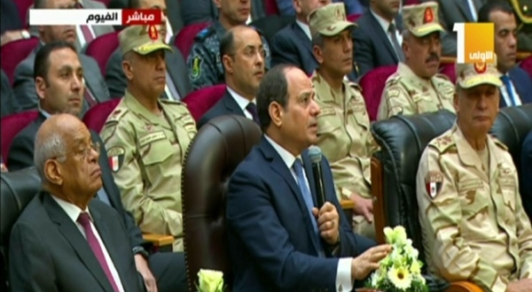 وواصل سفاح مصر أكاذيبه بأهمية عمل المصريين، حيث زعم أن المشروعات المقامة في الفيوم تهدف لإتاحة فرص عمل للقاطنين بها، وعلى بعد 40 كم منها توجد مشروعات الصوب الزراعية، التي تبلغ مساحتها ما يقرب من 15 ألف فدان، وعددها حوالي 3 آلاف صوبة.