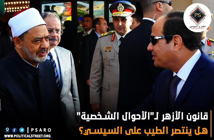 صفحة “الشارع السياسي Political Street” نشرت دراسة بعنوان “قانون الأزهر لـ”الأحوال الشخصية”..هل ينتصر الطيب على السيسي؟”، تحدث عن التطور الجديد في الأزمة المتصاعدة بين شيخ الأزهر، وقائد الانقلاب العسكري، قال إنها تأني ضمن مساعي التغريب وعلمنة المجتمع المصري.