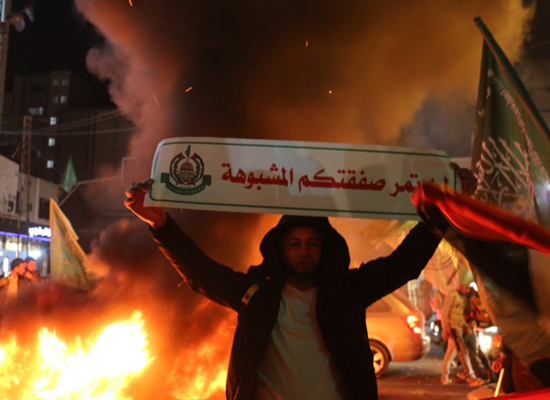 ونظَّمت حركة “حماس” وقفات احتجاجية في العديد من مناطق القطاع، مساء الخميس، بمشاركة جماهير غاضبة تعبيرًا عن رفض الشعب الفلسطيني للخطة الأمريكية.