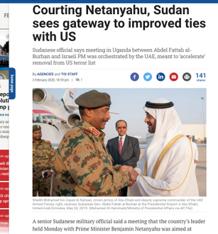 وقالت صحف عبرية منها "تايمز أوف إسرائيل" و"واشنطن بوست" نقلا عن مسئول عسكري سوداني: إن لقاء البرهان مع نتنياهو بأوغندا رتبت له الإمارات بمعرفة السعودية ومصر.